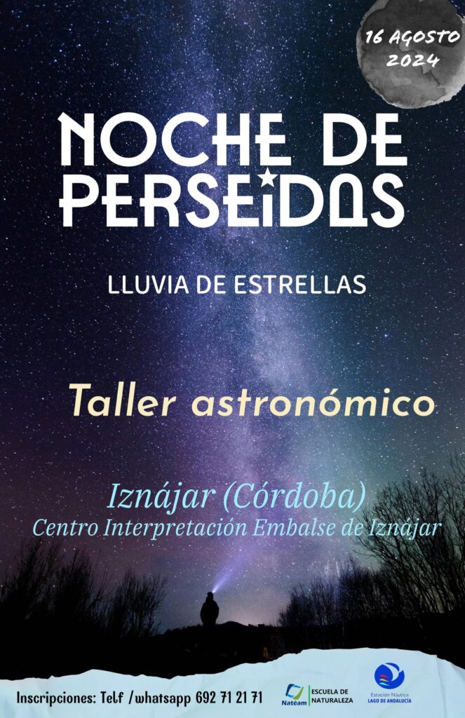 El pasado 16 de agosto, Nateam organizó una fascinante actividad astronómica en el Centro de Interpretación del Embalse de Iznájar, reuniendo a 40 personas provenientes de diversas localidades para disfrutar de la “Noche de Perseidas: Lluvia de Estrellas”. Este taller, dirigido por Cristóbal Cobo, ofreció una completa experiencia que combinó teoría y práctica, permitiendo a los participantes aprender y disfrutar del fenómeno astronómico en un entorno privilegiado.
